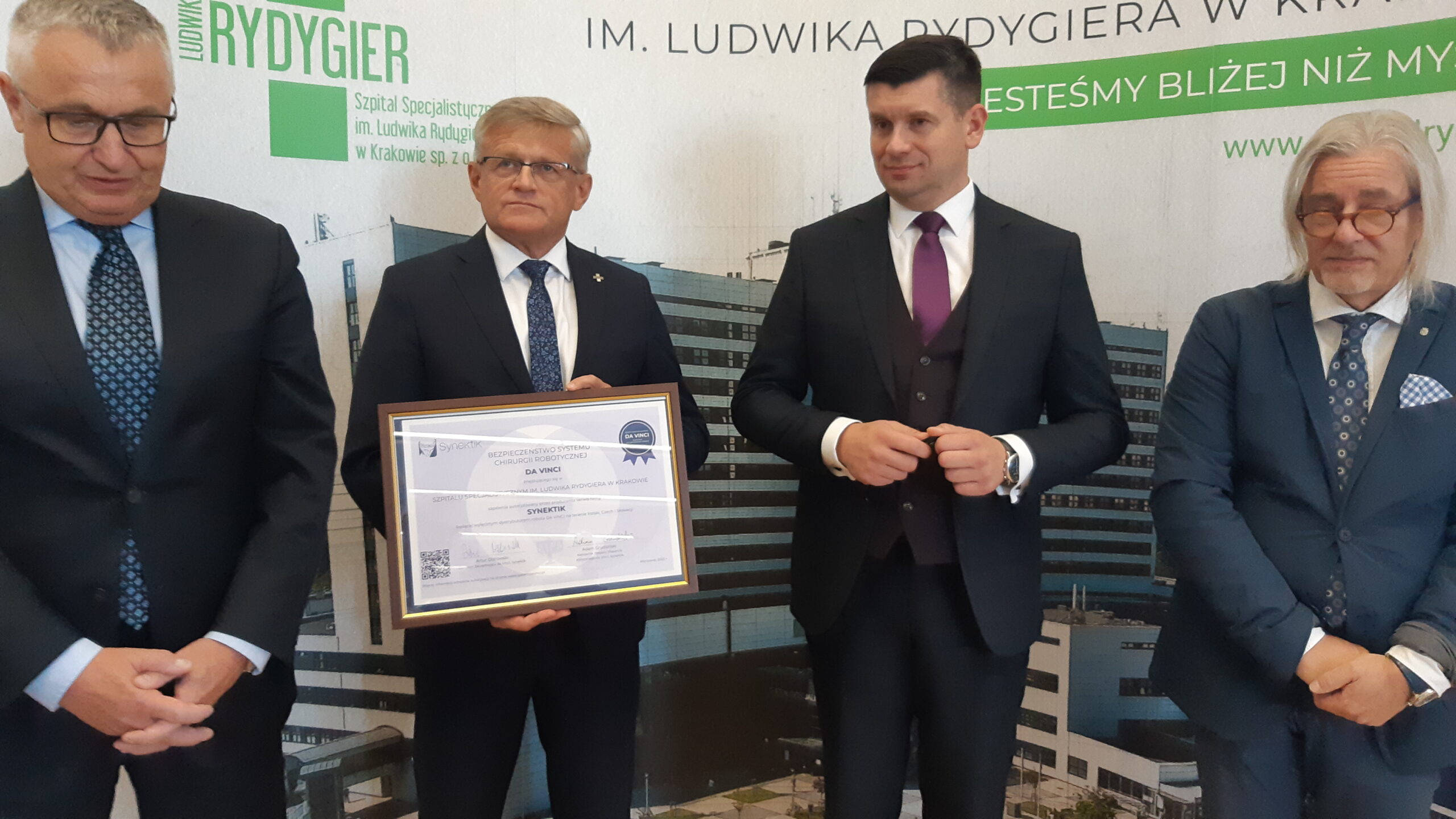 Szpital Rydygiera otrzymał również Certyfikat Bezpieczeństwa Systemu Chirurgii Robotycznej, co jest szczególnie ważne dla zapewnienia bezpieczeństwa Pacjentów i opieki medycznej na najwyższym technologicznym poziomie. Przypomnijmy, na całym świecie przeprowadzono już ponad 12 mln operacji w asyście robotów, a chirurgia robotyczna obejmuje dziś ponad 200 typów zabiegów chirurgicznych głównie w zakresie urologii, ginekologii i chirurgii ogólnej. Szpital Rydygiera jako pierwszy publiczny ośrodek z Małopolski dołączył do 36 placówek medycznych w Polsce, które w swojej działalności wykorzystują już roboty DA VINCI.