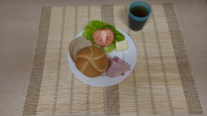Chleb graham 100g, Masło 83%tł. 20g, Ser żółty 50g, Pomidor 80g, Sałata zielona 20g, Kawa zbożowa z mlekiem b/c 250ml II Śniadanie: Jogurt naturalny 150g