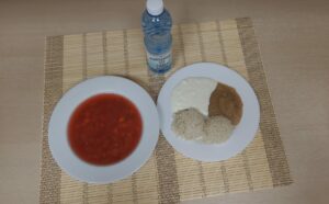 Barszcz czerwony z ziemniakami 400 ml, Ryż na sypko 200g, Mus z jabłek z/c 80g, Sos jogurtowy naturalny 100g, Kompot owocowy z jabłkami z/c 250ml