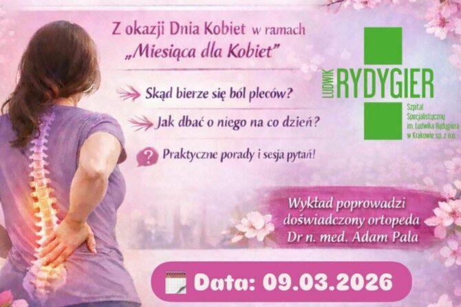 Wszystkie Panie zmagające się z bólem kręgosłupa (tak, wiemy – to niemal każda kobieta dźwigająca zakupy, siedząca przy biurku w pracy lub biegająca za ruchliwymi wnuczkami) zapraszamy 9 marca na szkoleniowe spotkanie z doktorem Adamem Palą, naszym specjalistą od zdrowego kręgosłupa, którego doskonale znają i cenią Pacjenci Oddziału Ortopedii i Traumatologii Ruchu. W Rydygierze mocny kręgosłup (ten moralny i ten standardowo pozwalający trzymać pion) to norma, dlatego chętnie dzielimy się wiedzą, jak tę normę na co dzień utrzymać ![]()