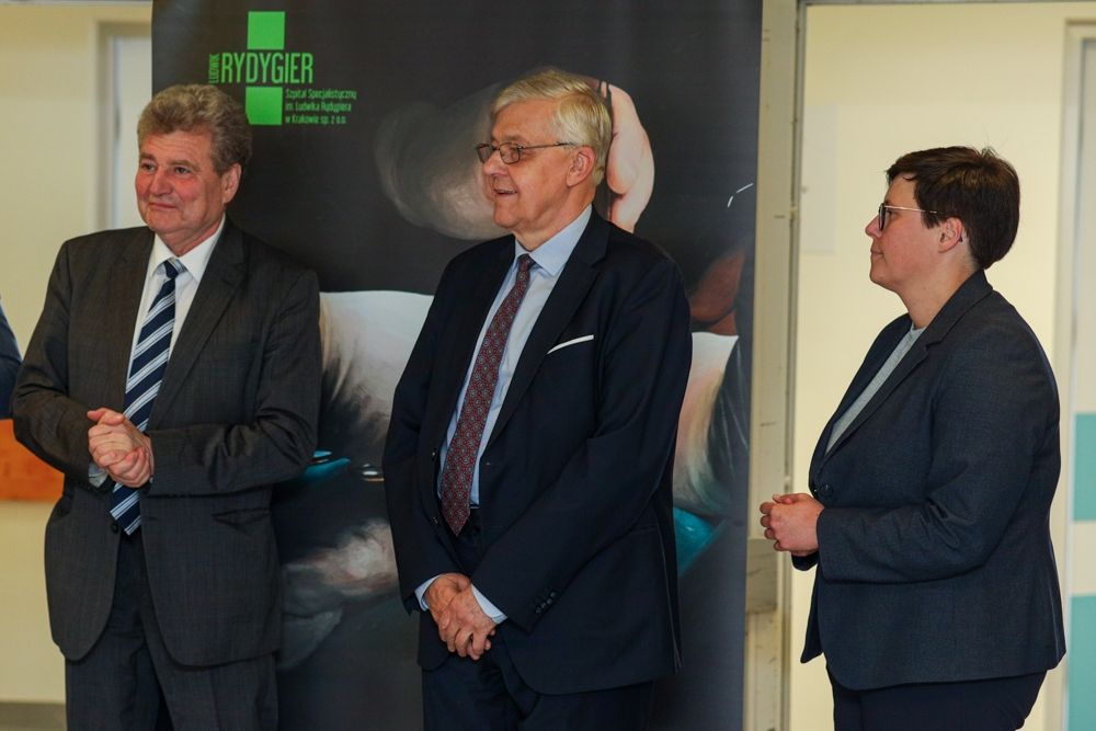 „Tutaj, w Szpitalu im. Rydygiera zapowiadaliśmy, że co roku będą remontowane kolejne oddziały i faktycznie systematycznie z modernizacjami schodzimy z najwyższych pięter w dół”– przypomniał Łukasz Smółka, Marszałek Małopolski, uczestniczący w dzisiejszym uroczystym otwarciu Oddziału Otolaryngologii. „Remont tego Oddziału to kolejny ważny krok w obszarze inwestycji w ochronę zdrowia. Jednym z priorytetów Zarządu Województwa Małopolskiego jest dobro pacjentów, którzy potrzebują godnej opieki. Poprawa warunków pracy dla lekarzy i personelu szpitali, a jednocześnie poprawa warunków pobytu pacjentów jest strategią, którą chcemy kontynuować i realizować wspólnie z dyrektorami szpitali. Inwestycje w ochronę zdrowia to nie są tylko inwestycje w województwo, to są inwestycje w drugiego człowieka” – powiedział Marszałek.