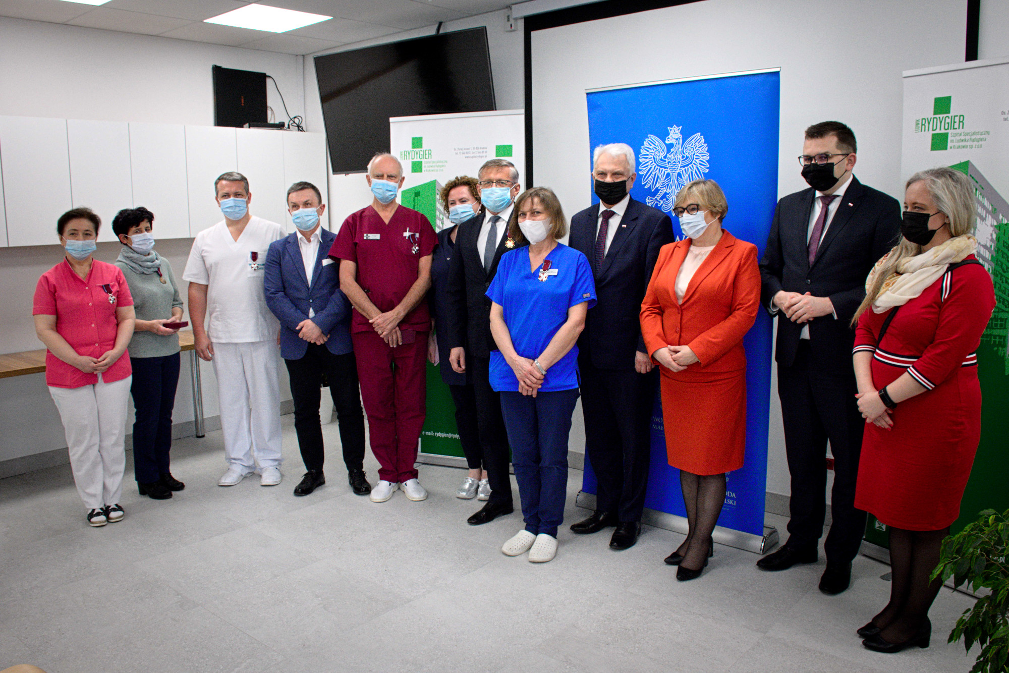 Symboliczny czek potwierdzający przyznanie Rydygierowi 3 mln zł z Funduszu Przeciwdziałania Covid wręczył Prezesowi A. Asztabskiemu Wiceminister zdrowia Waldemar Kraska. Pieniądze przeznaczone będą na modernizację instalacji tlenowej oraz zakup cyfrowych aparatów RTG, video – gastroskopów oraz łóżek szpitalnych.