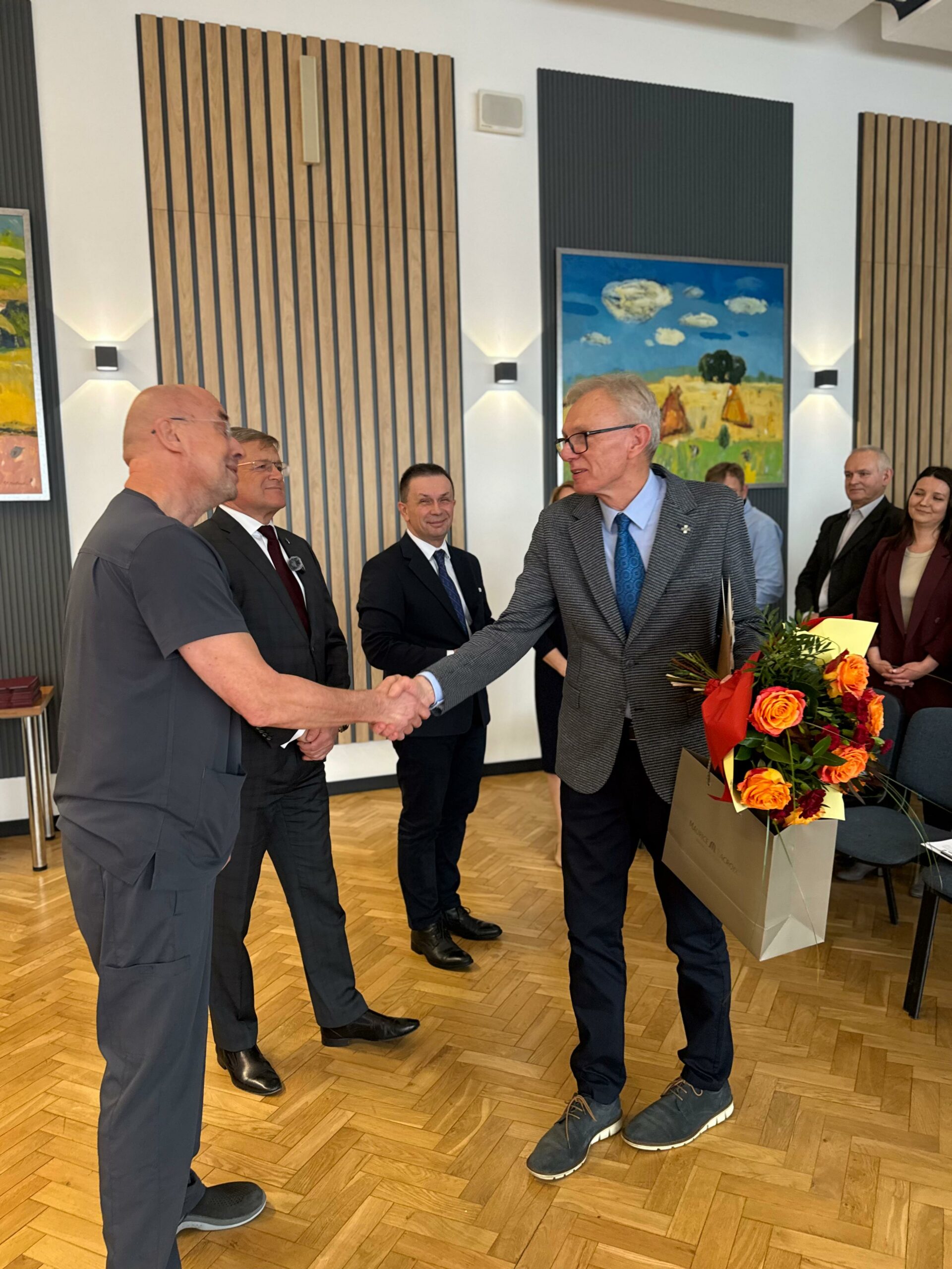 „Cieszę się, że Pacjentów i Oddział zostawiam w dobrych rękach. I cieszę się, że po 45 latach pracy w zawodzie mogę teraz nieco zmienić priorytety. Chcę poświęcać więcej czasu wnukom i jedynie od czasu do czasu – szczególnie przy deszczowej pogodzie – trochę popracować. To zupełnie inna perspektywa.” – humorystycznie ripostował dzisiejsze podziękowania Ordynator Ryszard Nowak.