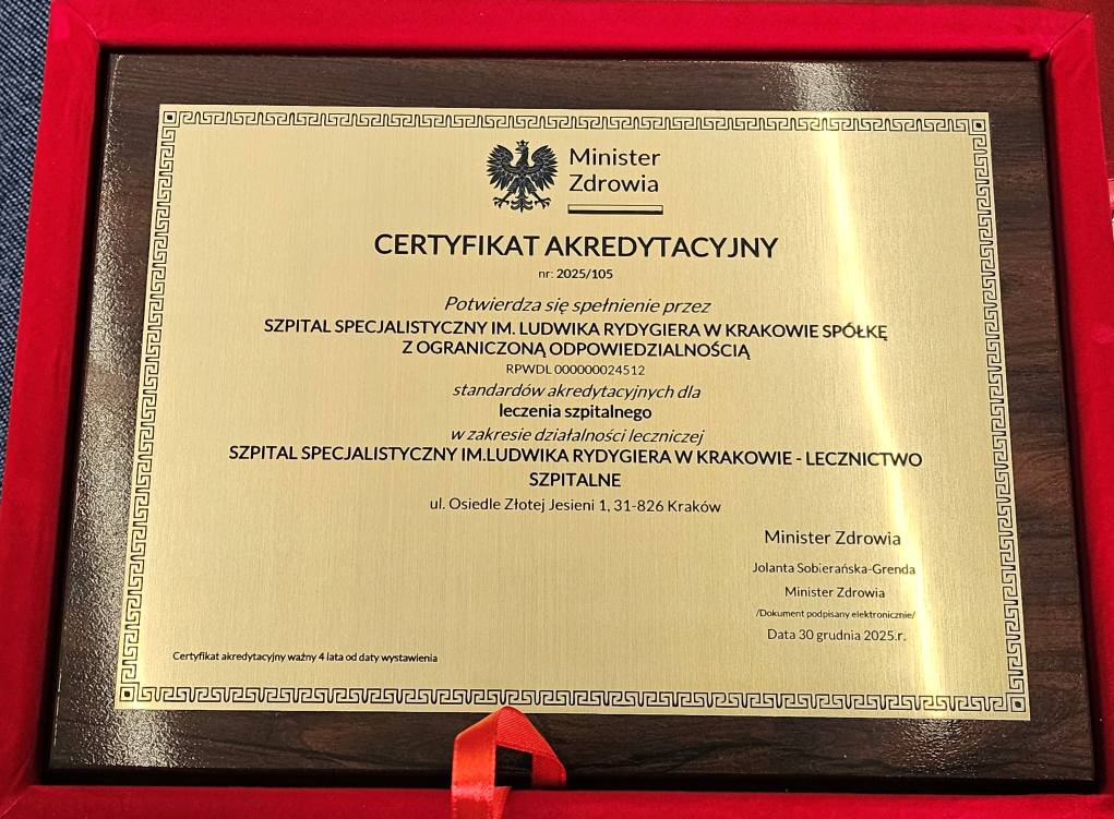 Certyfikat przyznawany jest co cztery lata i dla Szpitala Rydygiera, który w zakończonym procesie akredytacji osiągnął najwyższy poziom jakości oznacza to również zdecydowanie większy budżet środków NFZ, przeznaczanych na świadczenie specjalistycznych procedur medycznych.