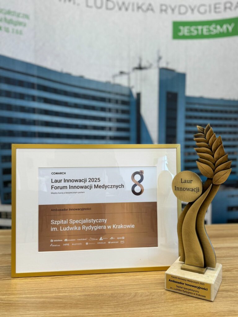 Z radością informujemy, że na dzisiejszej Gali Laureatów Innowacji, zorganizowanej w ramach VIII Forum Innowacji Medycznych Comarch Healtcare, Szpital Rydygiera otrzymał tytuł „Ambasadora Innowacyjności”!