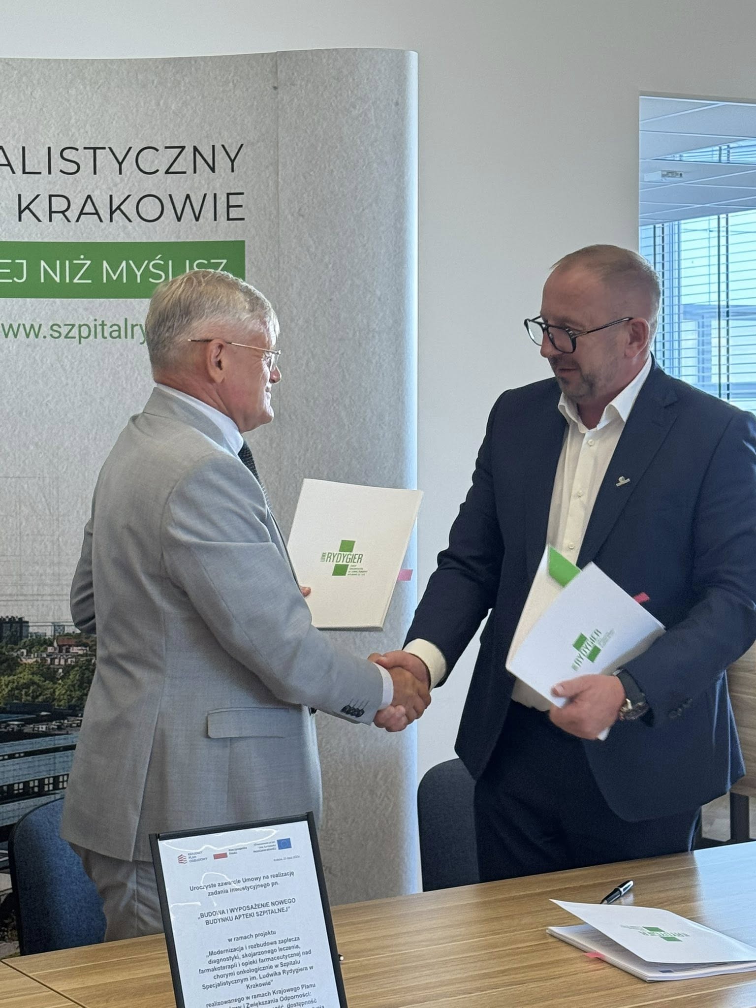 „Dzisiejsze podpisanie umowy na budowę apteki w Szpitalu Rydygiera to kolejny, ważny krok w kierunku zintegrowanej, nowoczesnej i skutecznej opieki nad pacjentami onkologicznymi w Małopolsce. Warto dodać, że środki przyznane Szpitalowi Rydygiera są częścią olbrzymiej kwoty, która trafiła do dziewięciu małopolskich szpitali w ramach wsparcia rozwoju infrastruktury onkologicznej. Małopolskie szpitale otrzymały blisko pół miliarda złotych” – przypomniał Łukasz Smółka, Marszałek Małopolski, który uczestniczył dziś w uroczystym podpisaniu umowy na realizację tego wyjątkowego dla Małopolski projektu.
