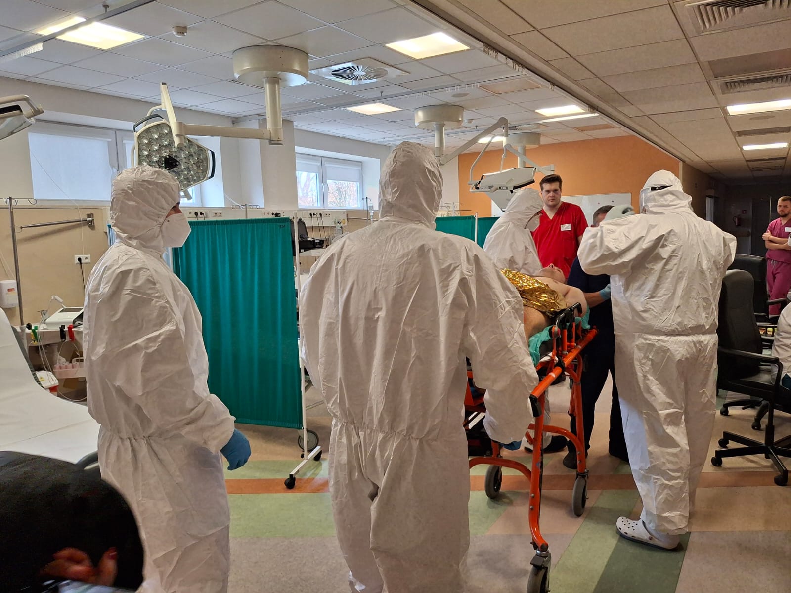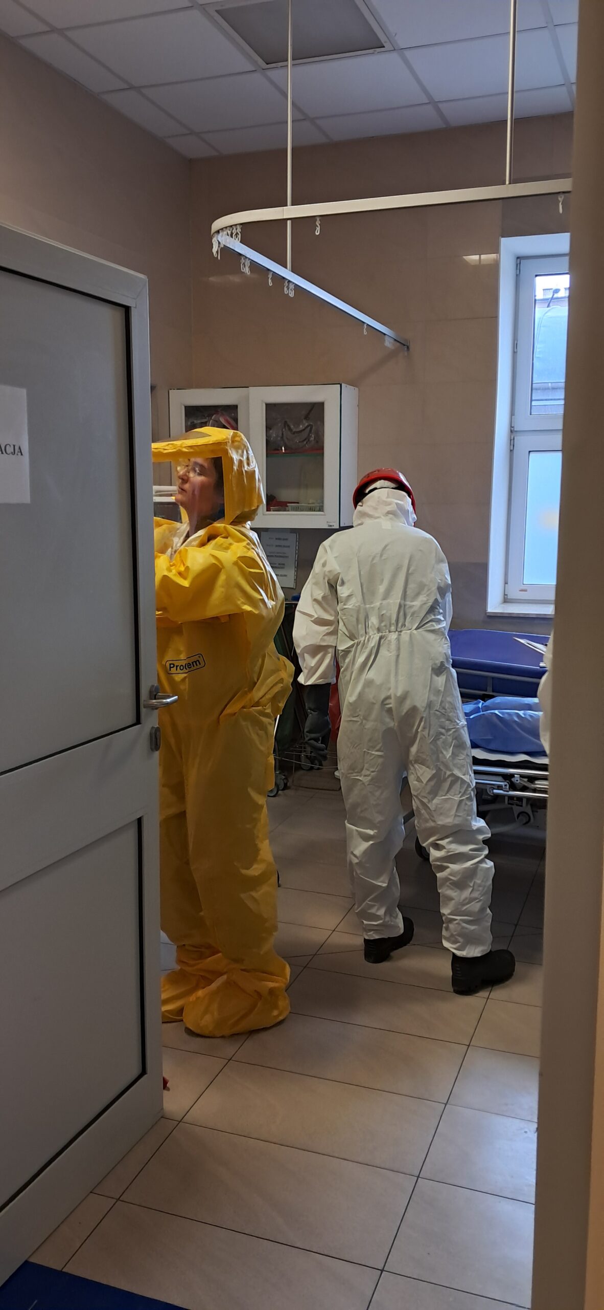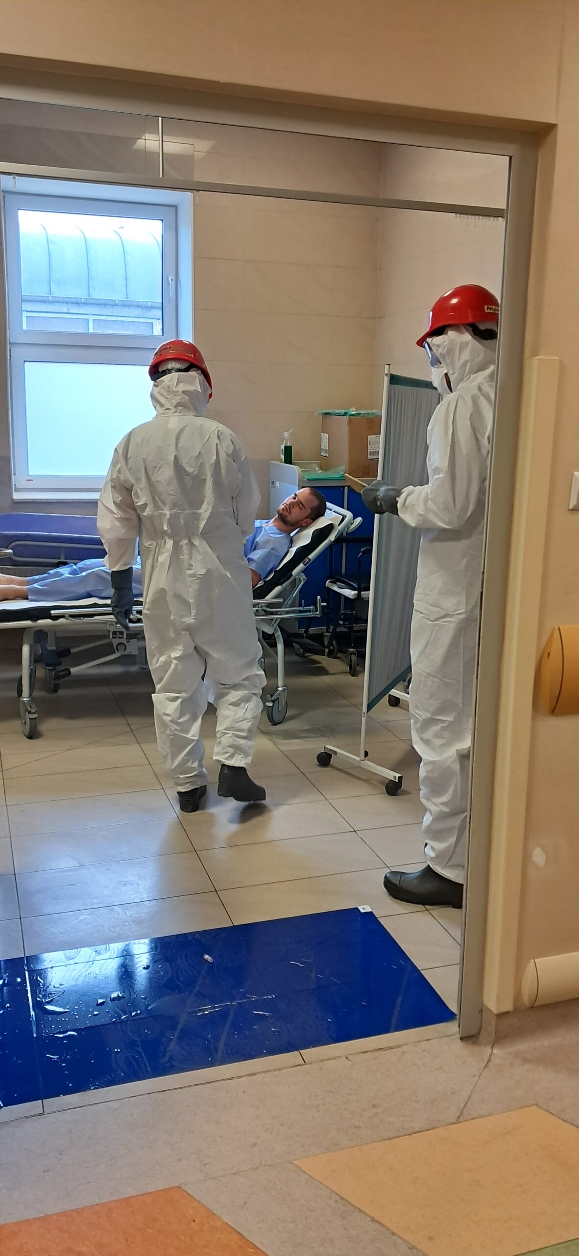Konsekwencje wydarzeń, do których doszło w naszym szpitalu w środę przed południem mogły być dramatyczne; tuż po godz. 9:00 na jednym z naszych parkingów doszło do wybuchu pojazdu – kierowca auta stracił przytomność, a na miejscu zdarzenia pojawiły się dziwne opary. Niebezpieczeństwo było duże i wzrastało z każda minutą; jak się okazało wybuch uszkodził oznakowany pojazd do przewożenia materiałów radioaktywnych, wykorzystywanych w lecznictwie szpitalnym. Niestety, w bezpośrednim obszarze skażenia obecna była jeszcze przypadkowa osoba, która nieświadoma potencjalnego zagrożenia chciała udzielić pomocy nieprzytomnemu kierowcy. I chociaż na miejscu szybko pojawiły się służby ratunkowe – Jednostki Ochrony Przeciwpożarowej, Ratownictwa Medycznego, Policji i odpowiednich służb do działań w przypadkach skażeń czynnikami chemicznymi, biologicznymi, radiologicznymi i nuklearnymi – skutki tego zdarzenia mogły okazać się dramatyczne.