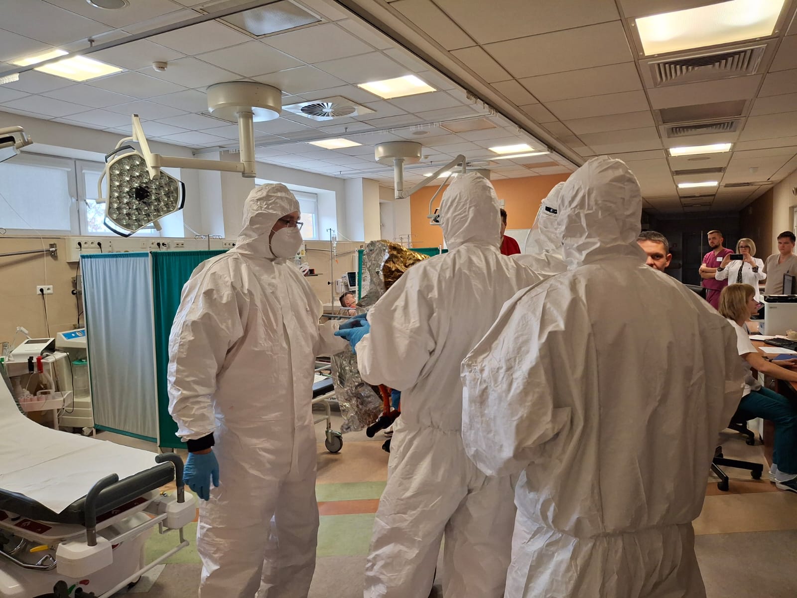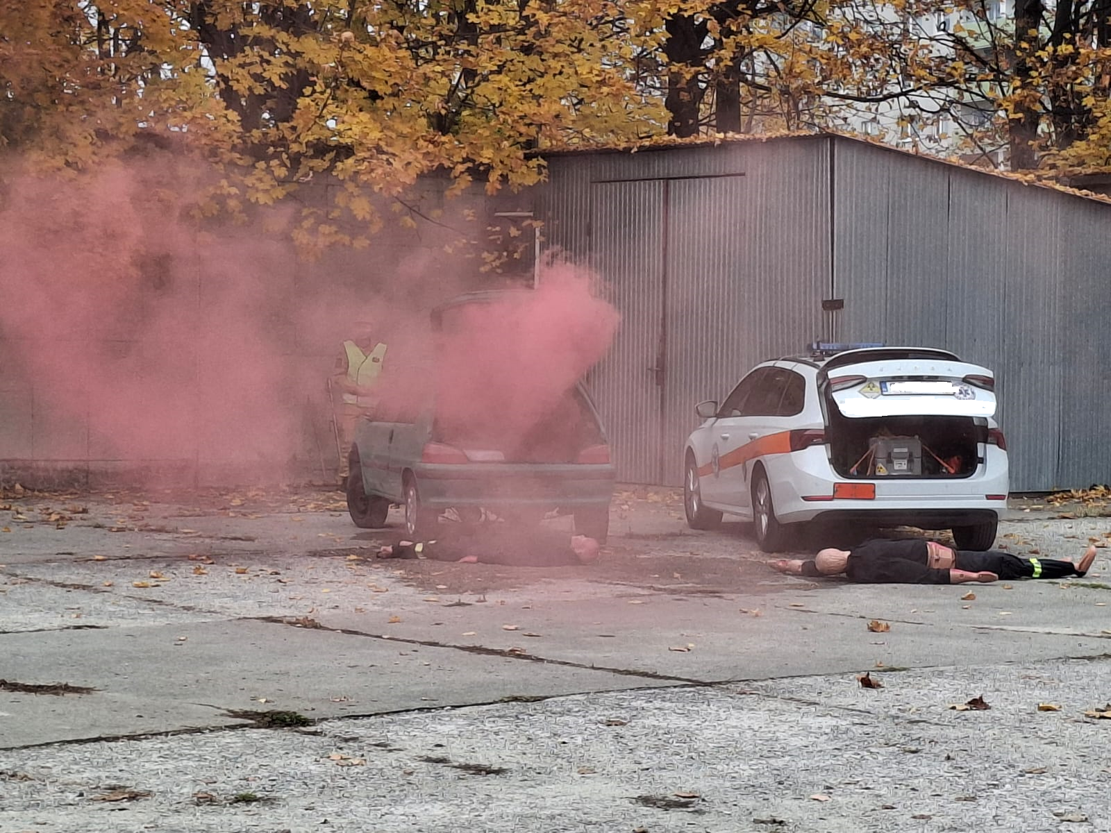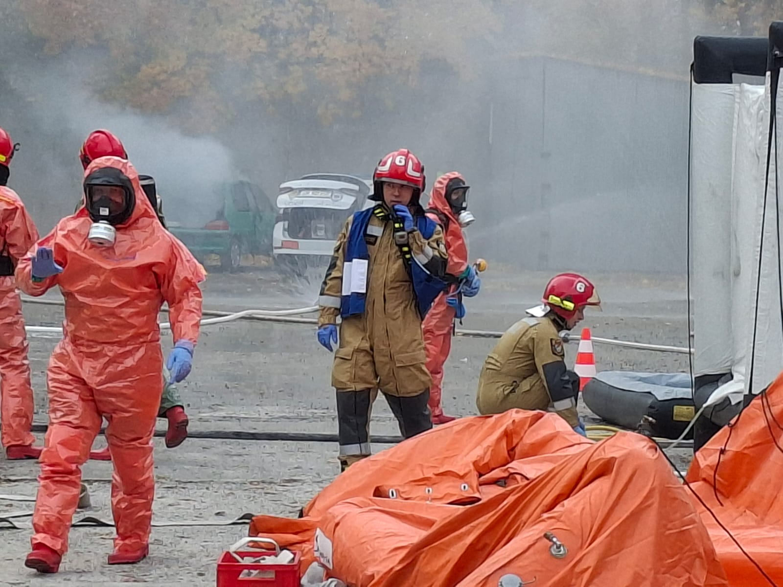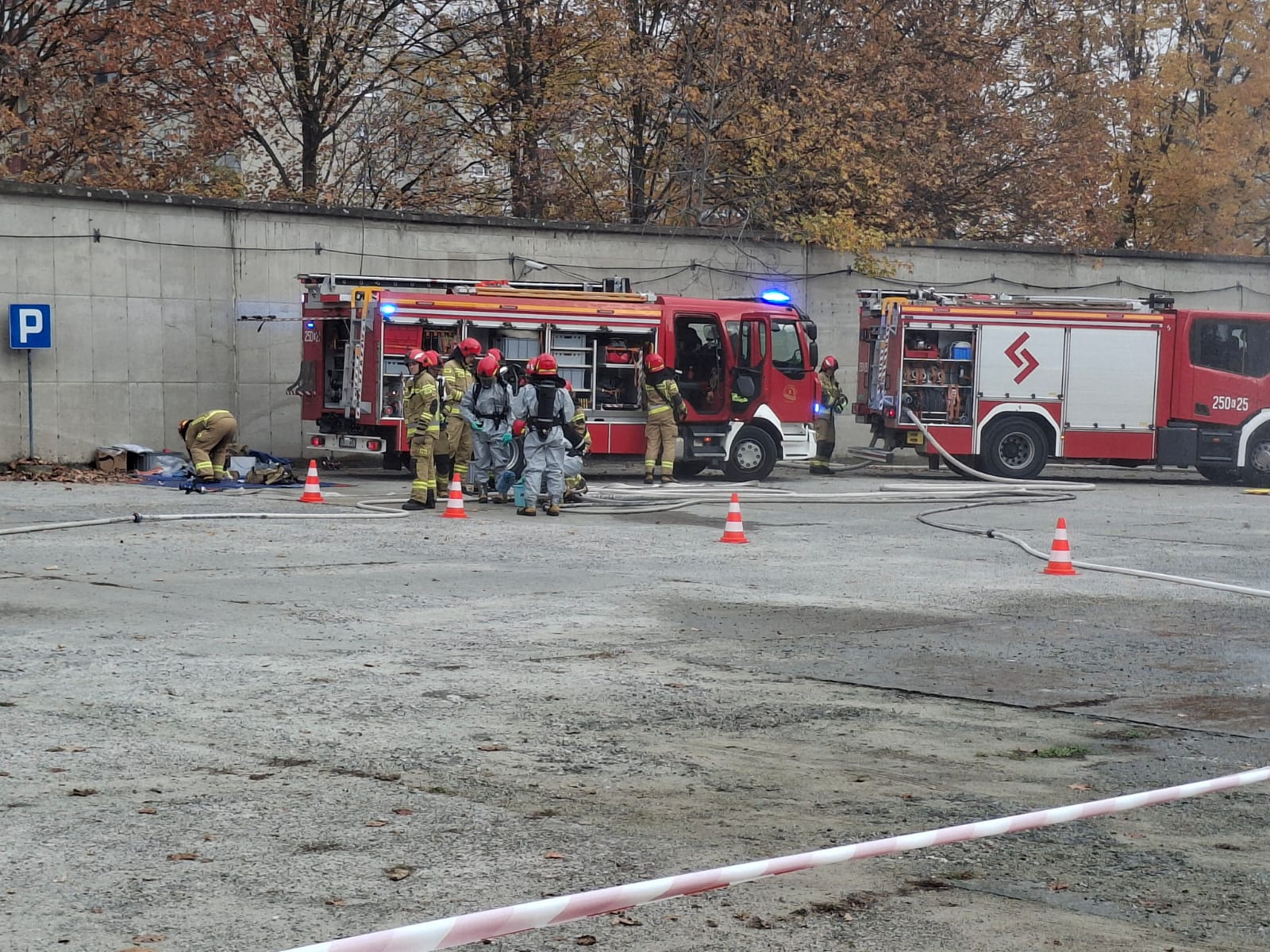 Konsekwencje wydarzeń, do których doszło w naszym szpitalu w środę przed południem mogły być dramatyczne; tuż po godz. 9:00 na jednym z naszych parkingów doszło do wybuchu pojazdu – kierowca auta stracił przytomność, a na miejscu zdarzenia pojawiły się dziwne opary. Niebezpieczeństwo było duże i wzrastało z każda minutą; jak się okazało wybuch uszkodził oznakowany pojazd do przewożenia materiałów radioaktywnych, wykorzystywanych w lecznictwie szpitalnym. Niestety, w bezpośrednim obszarze skażenia obecna była jeszcze przypadkowa osoba, która nieświadoma potencjalnego zagrożenia chciała udzielić pomocy nieprzytomnemu kierowcy. I chociaż na miejscu szybko pojawiły się służby ratunkowe – Jednostki Ochrony Przeciwpożarowej, Ratownictwa Medycznego, Policji i odpowiednich służb do działań w przypadkach skażeń czynnikami chemicznymi, biologicznymi, radiologicznymi i nuklearnymi – skutki tego zdarzenia mogły okazać się dramatyczne.